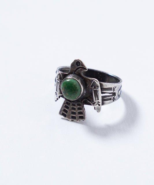 VINTAGE NAVAJO TURQUOISE & THUNDER BIRD APPLIQUE RING FRED HARVEY ERA