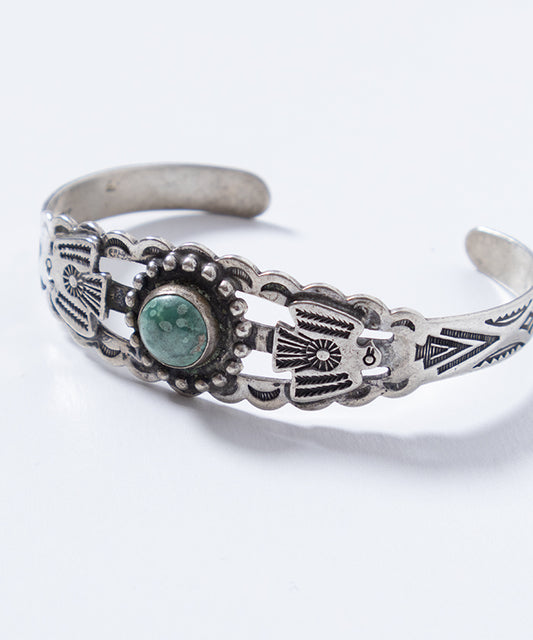 VINTAGE NAVAJO TURQUOISE & ARROW STAMPED CUFF BRACELET FRED HARVEY ERA